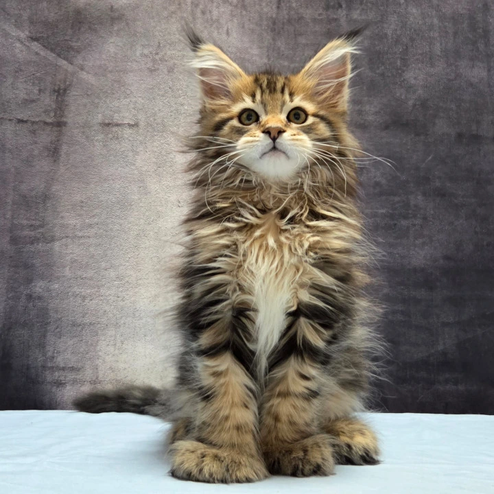 Laos is not only remarkable for his beautiful fur but also for his rare polydactyl trait—the adorable extra toes, a hallmark of extraordinary Maine Coons. His playful personality and gentle disposition make him the ideal companion for families and cat enthusiasts alike.
