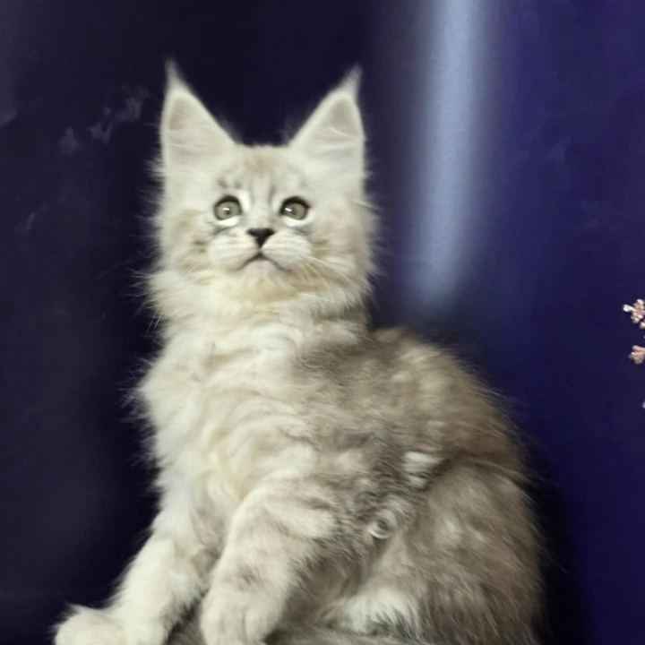 Meet Amrita – our enchanting Maine Coon kitten, ready to fill your home with sweetness and charm! Born on 11/05/2025, Amrita is a beautiful female with a stunning black silver marble (ns22) coat that shimmers with elegance and grace. Her striking colors and expressive eyes will capture your heart from the very first moment.